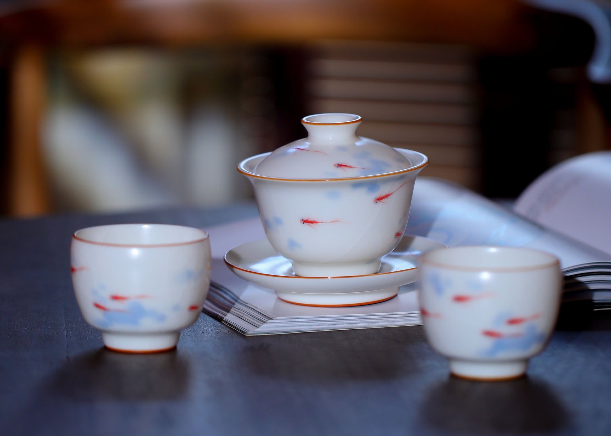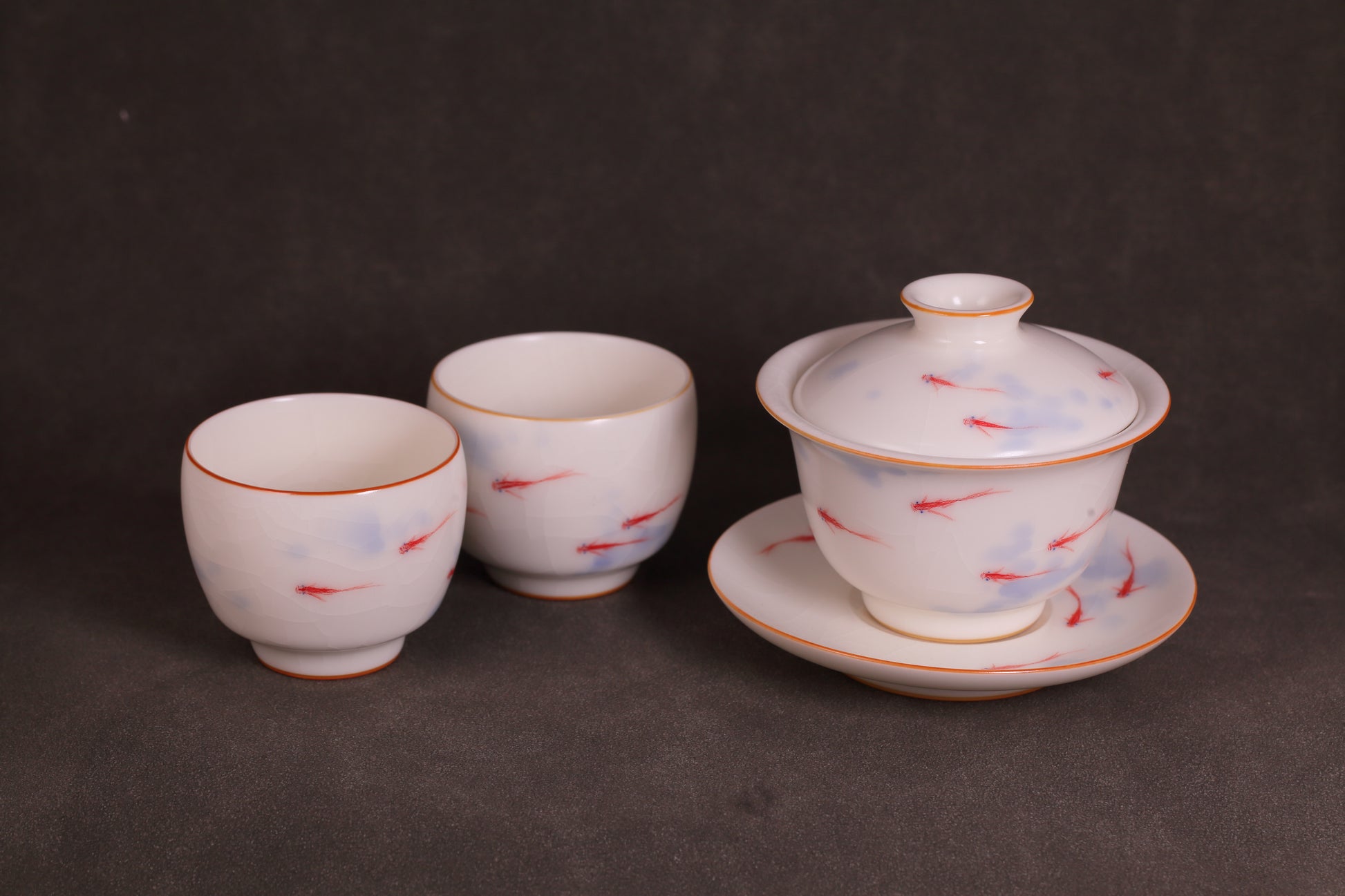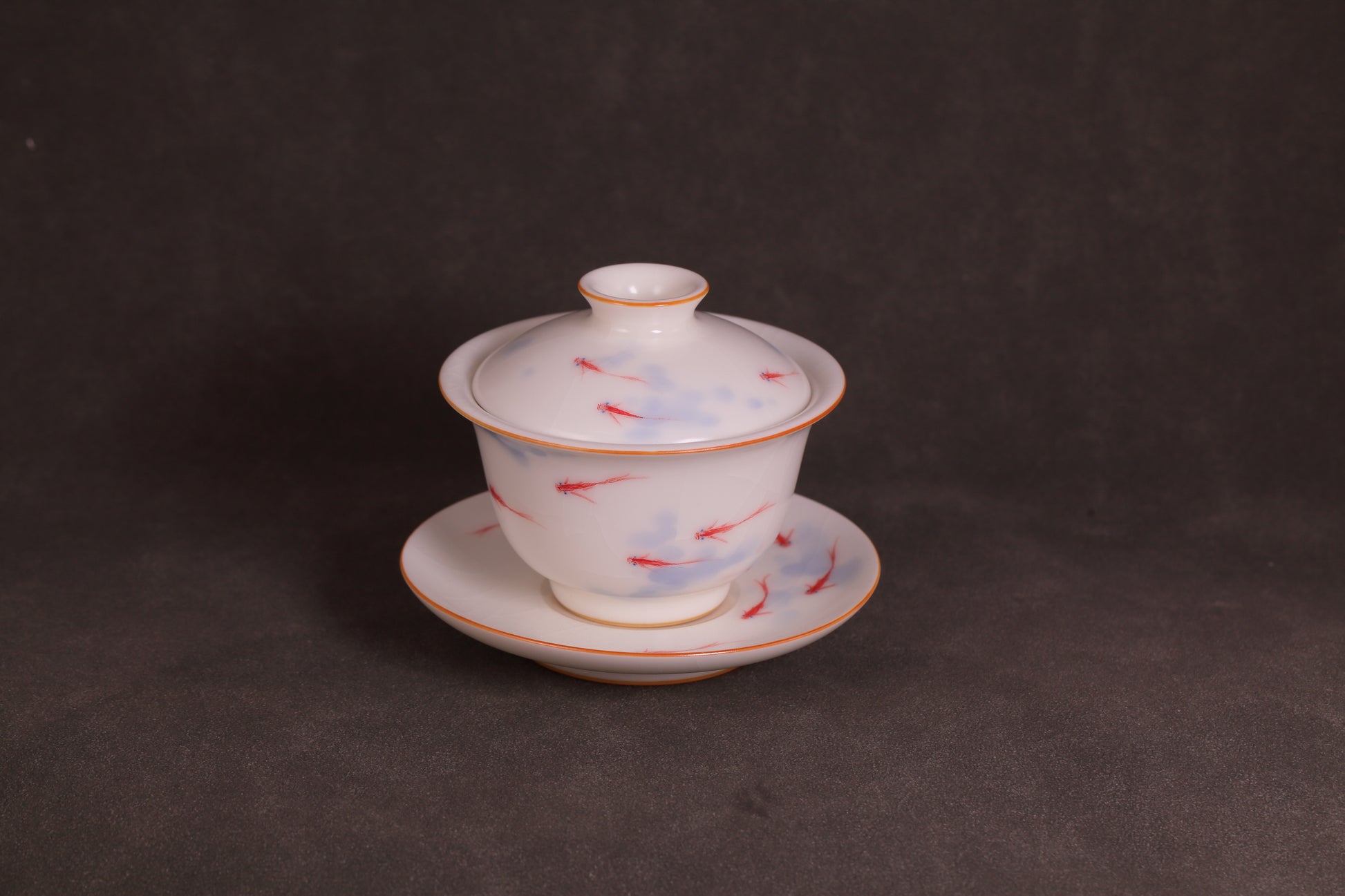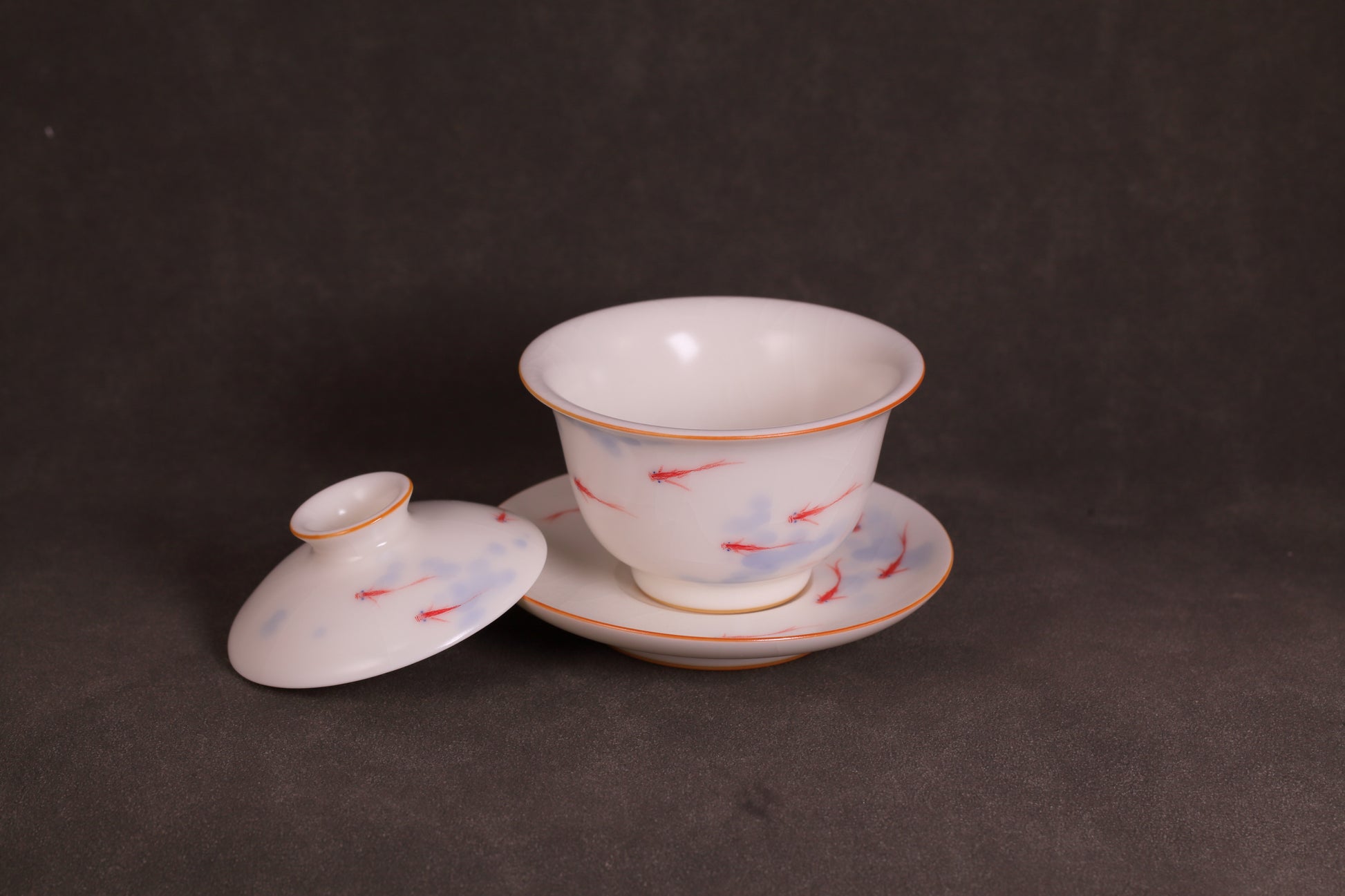 玉白“年年有余”盖碗套组金鱼灵动,富足长久